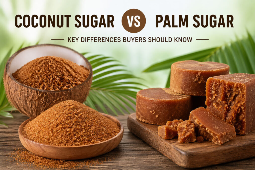 Coconut sugar vs palm sugar is a common comparison among buyers, distributors, and food manufacturers looking for natural sweetener options. Understanding the differences between these two products is essential to choose the right one for your market, application, and supply needs.